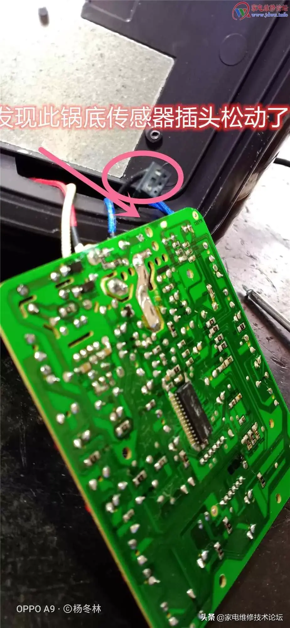 重新插上锅底传感器接头,上电试机正常加热。谢谢欣赏!(作者:杨冬林/家电维修论坛www.jdwx.info)