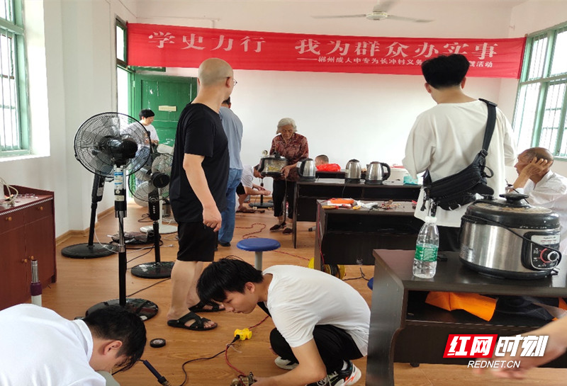 此次活动,由郴州成人中专电子电器运用与维修专业师生为村民义务维修电饭煲28个、风扇19个、烧水壶8个及各类其它电器16件,切实将“学史力行,我为群众办实事”落到实处,成功助推了乡村振兴工作。