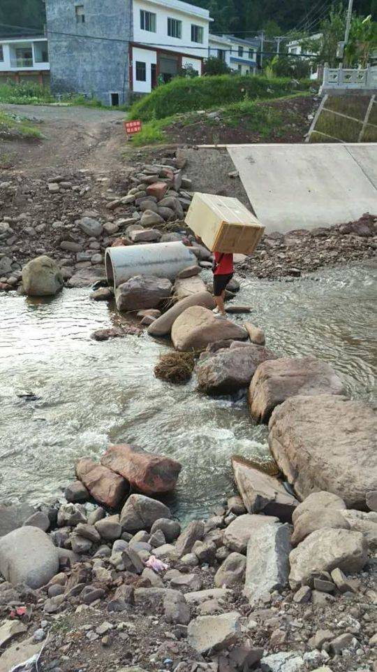 大山里的村庄小路,常会被大雨冲坏,最近当地京东家电专卖店配送员给客户送冰箱时,发现小路被冲坏了一半。客户最后想了办法,把家里运杂物的自制两轮架子车拉过来,几个人合力把冰箱放到架子车上运送。通过这段被冲坏的路时,配送员不放心,跑到架子车一侧往前推,防止压垮路面损坏冰箱。