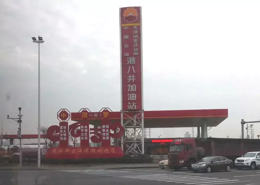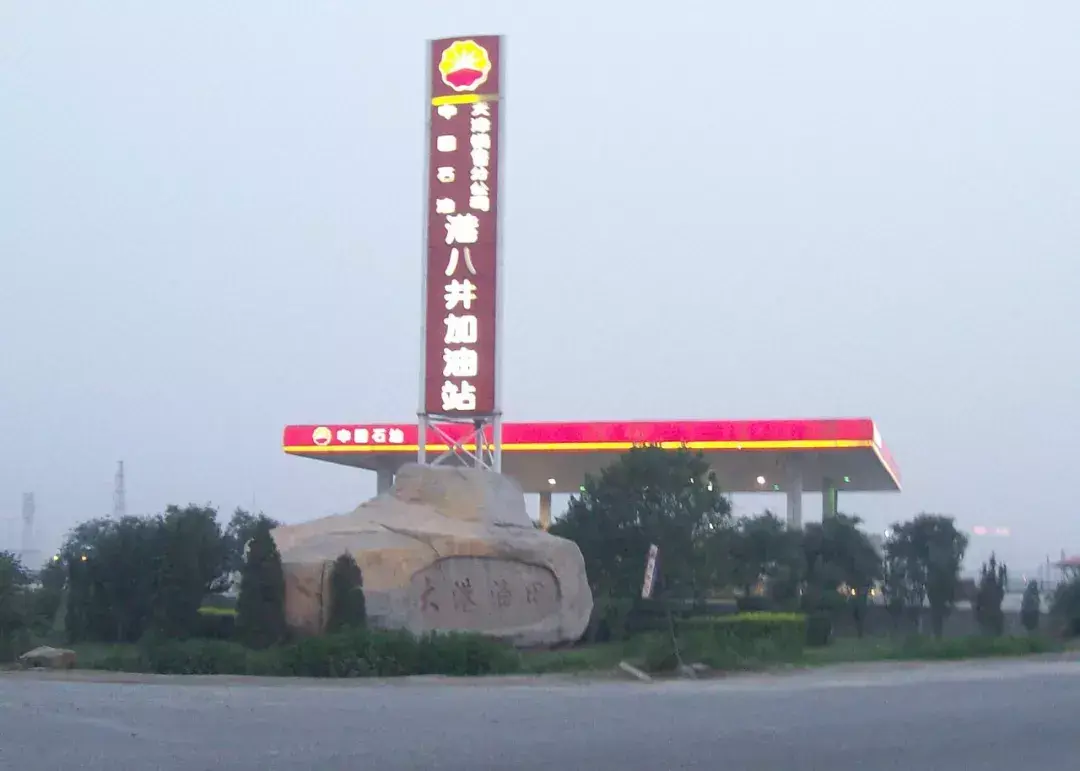 12月20日,做滨海公交540路经过港八井路口时,发现港八井加油站大牌子下立了新牌匾:中国梦,落款是滨海新区海滨街欢迎您。记的很多年前,就是这个位置有一块大石头,上面刻了四个大字:大港油田。那个大石头挺好的,简捷,告诉来往的车辆,到大港油田了。有人说,大石头是空的,但是看着还好。最后,大石头消失了。