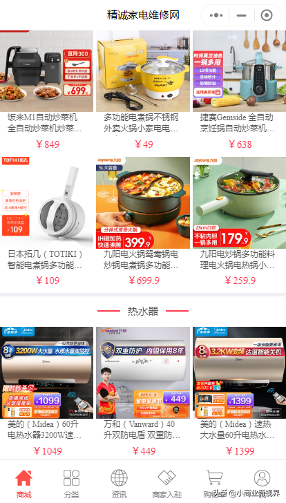 精诚家电维修网小程序 作为一款专门售卖家电及提供家电维修的平台,它专注于为人们提供最优质的家用电器以及售后维修服务,对于广大用户而言是十分具有保障的一个平台。且平台目前为了产品的多元化,全力欢迎广大商家入驻平台,互赢互利、互相扶持。平台里面含有:小家电、热水器、洗衣机、电视机、冰箱系列、空调系列、风扇系列、家电维修等等;且平台集搜索、查询、订阅、交流、下单、购买、评价、反馈、联系等多功能于一体,一站式解决人们对家电的多样需求。