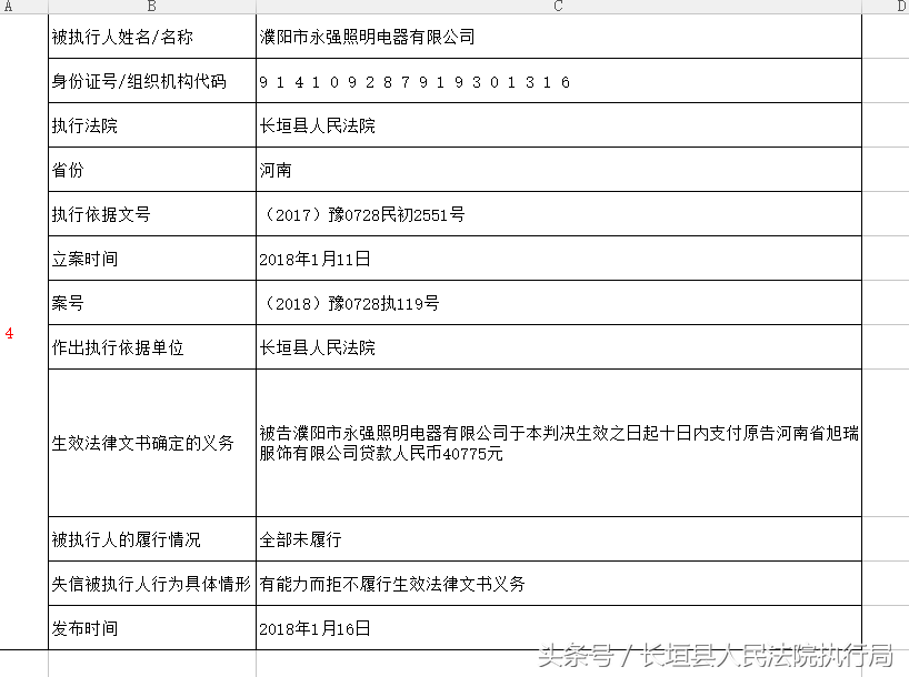 濮阳市永强照明电器有限公司,请及时履行义务