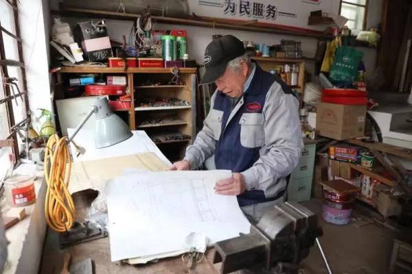 在他的工作室里,整整齐齐地摆放着各种各样的工具,还有厚厚的图纸。赵师傅说:“年纪大了,记忆力跟不上,维修起来比较有难度的,我就提前画好设计图,再按图施工。”