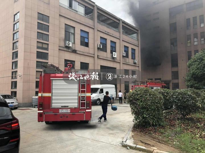 “余杭区百丈镇卫生院对面的一个电器厂起火了,有人员被困……”
