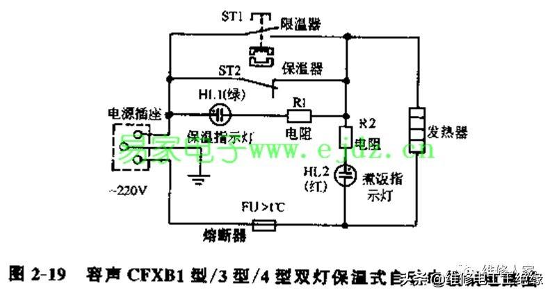 附:确定是否修好除可以接通电源进行测试亦可用万用表(二极管档)检测,煮饭时的阻值约为70——90欧,保温时约为700——9 00欧。