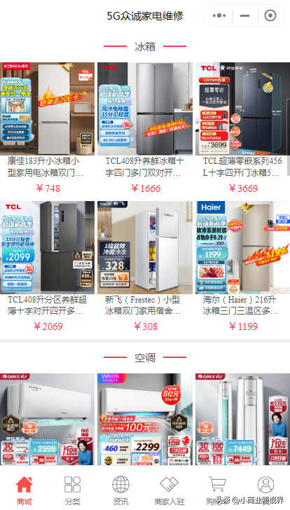 5G众诚家电维修小程序 作为一款专门销售家用电器及维修服务的平台,专注于为人们提供最优质的家用电器,对于广大用户而言是十分具有保障的一个平台。且平台目前为了产品的多元化,全力欢迎广大商家入驻平台,实现互利共赢。现如今,平台内含有:小家电、热水器、洗衣机、电视机、冰箱系列、空调系列、风扇系列、家电维修等等,品类多样,很好的满足广大用户的需求;且平台集搜索、查询、订阅、交流、下单、购买、评价、反馈、联系等多功能于一体,更好的满足人们的对家电的各种需求。