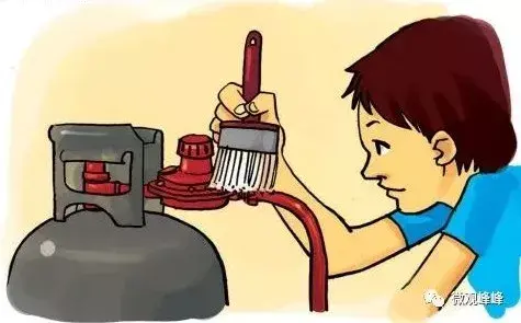 4、经常用小毛刷蘸肥皂水或洗涤精水用涂抹等方式对阀门、活结、短丝、弯头、胶管连接等处进行查漏,严禁使用明火查漏。