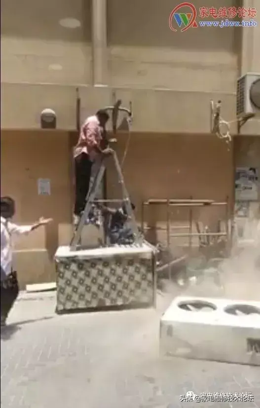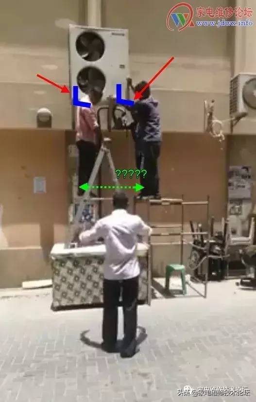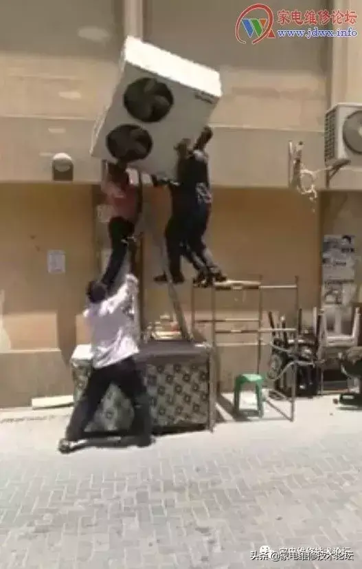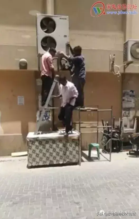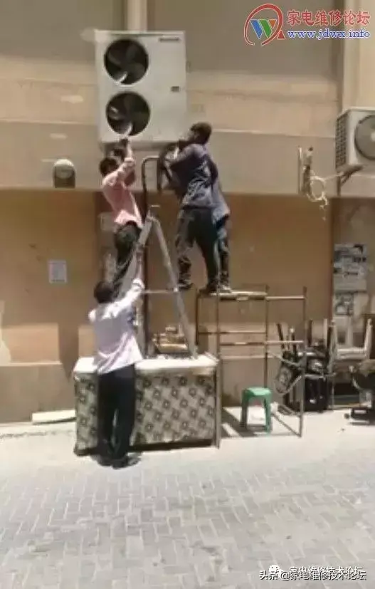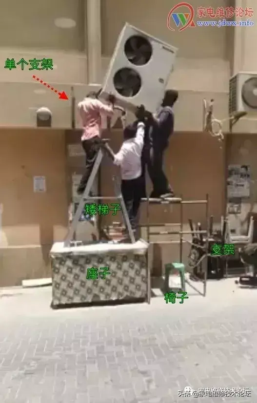 前先是空调外机已费九牛二虎之力给抬上去了,后来白衣老伯说“支架装太宽了,拿下来重装!!”后来就倒下了……于是,提早放工!