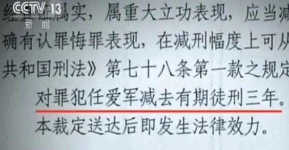 任爱军服刑期间,申请减刑的方式有两种:监狱改造获取积分和重大立功。2002年入狱到2013年出狱,任爱军有4次常规减刑和两个重大立功的记录,已经把减刑用到极致。