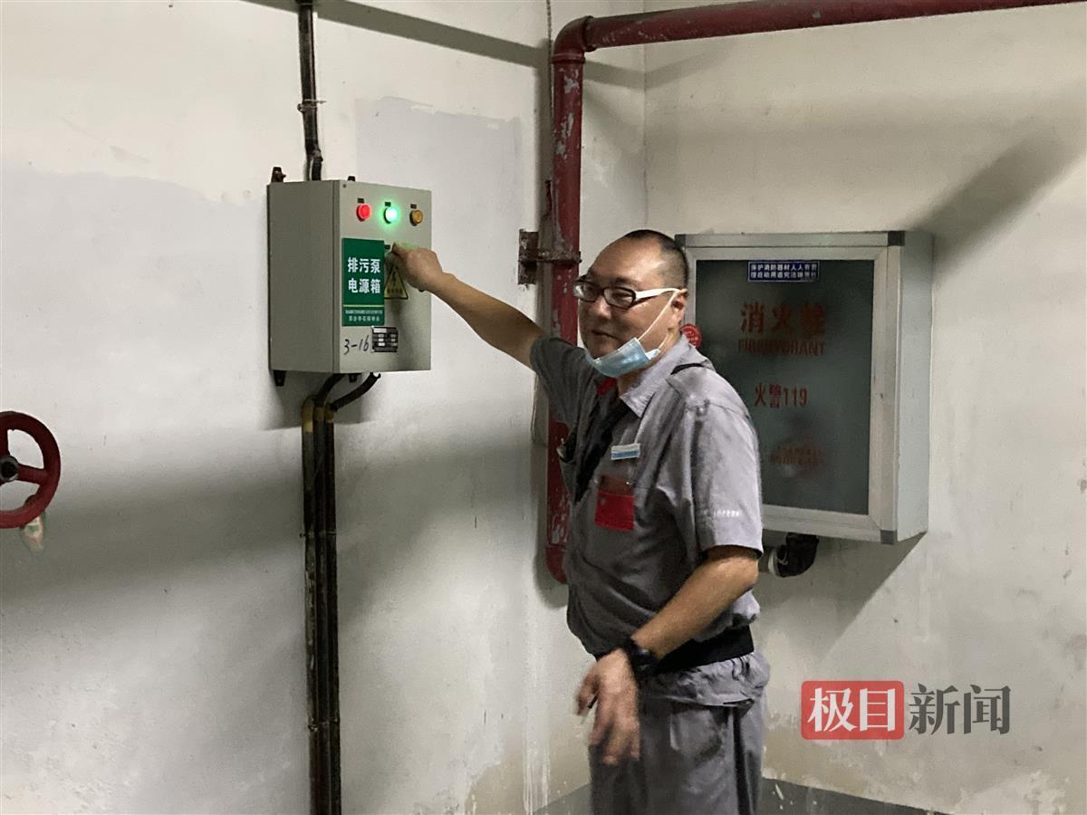 中午时分,极目新闻记者跟随郑洪威像往常一样来到地下车库进行巡查,只见他逐一检查着消防风机控制箱、排污泵电源箱等设备,确认运行正常后,再走进配电室操作机房。