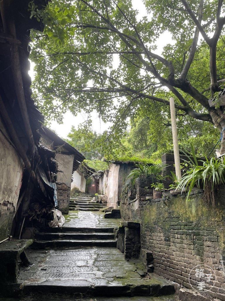 所踏足的每一寸石板,青苔油绿,花木繁茂,丰沛的雨水和江边肥沃的土地让这个失去了现代化触感的地方显得灵气十足。