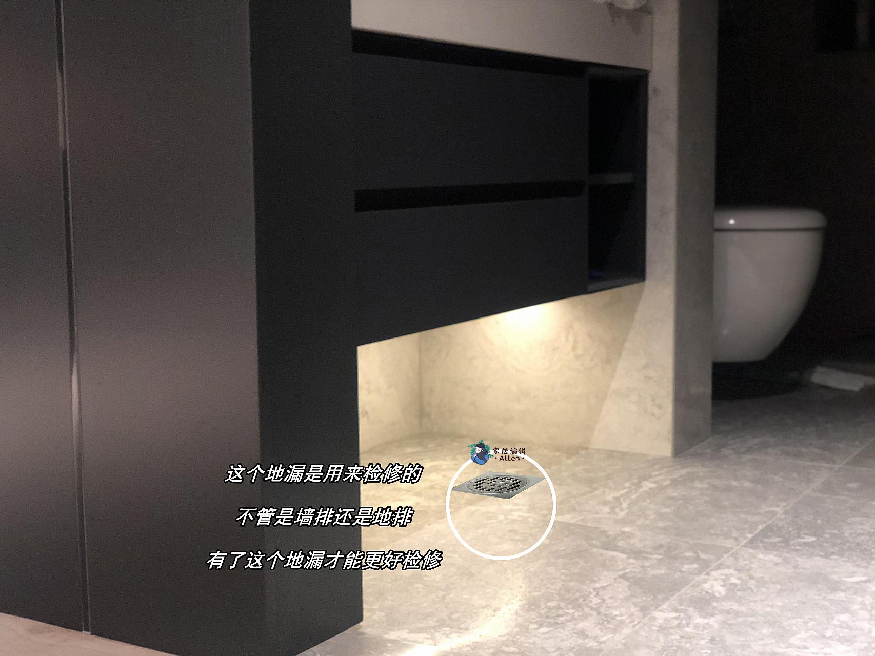 墙排的好处就是做悬空浴室柜更美观,底部也更好打扫。