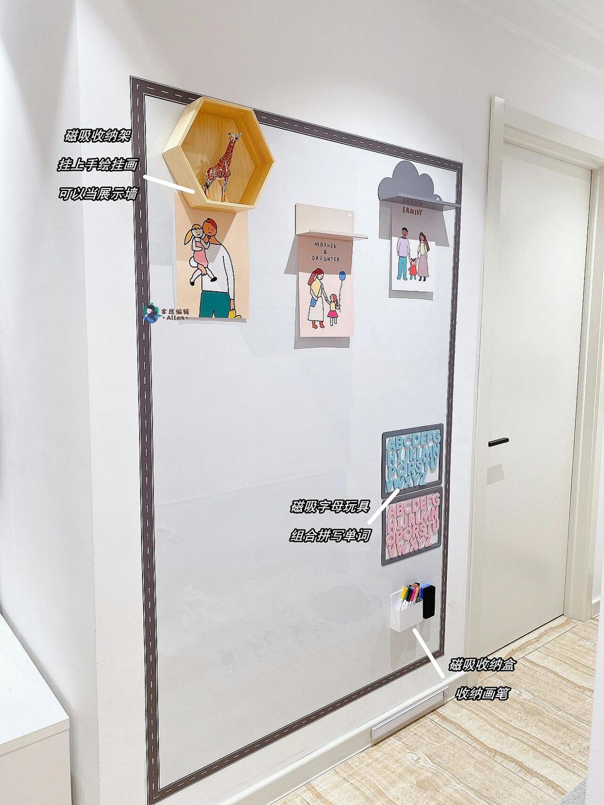 这种是安装在墙上的,以后不需要了还能拆掉,关键是它自带磁吸能力,搭配一些磁吸的益智玩具,孩子玩到了还学到了,还能邀请小伙伴来家里一起玩。