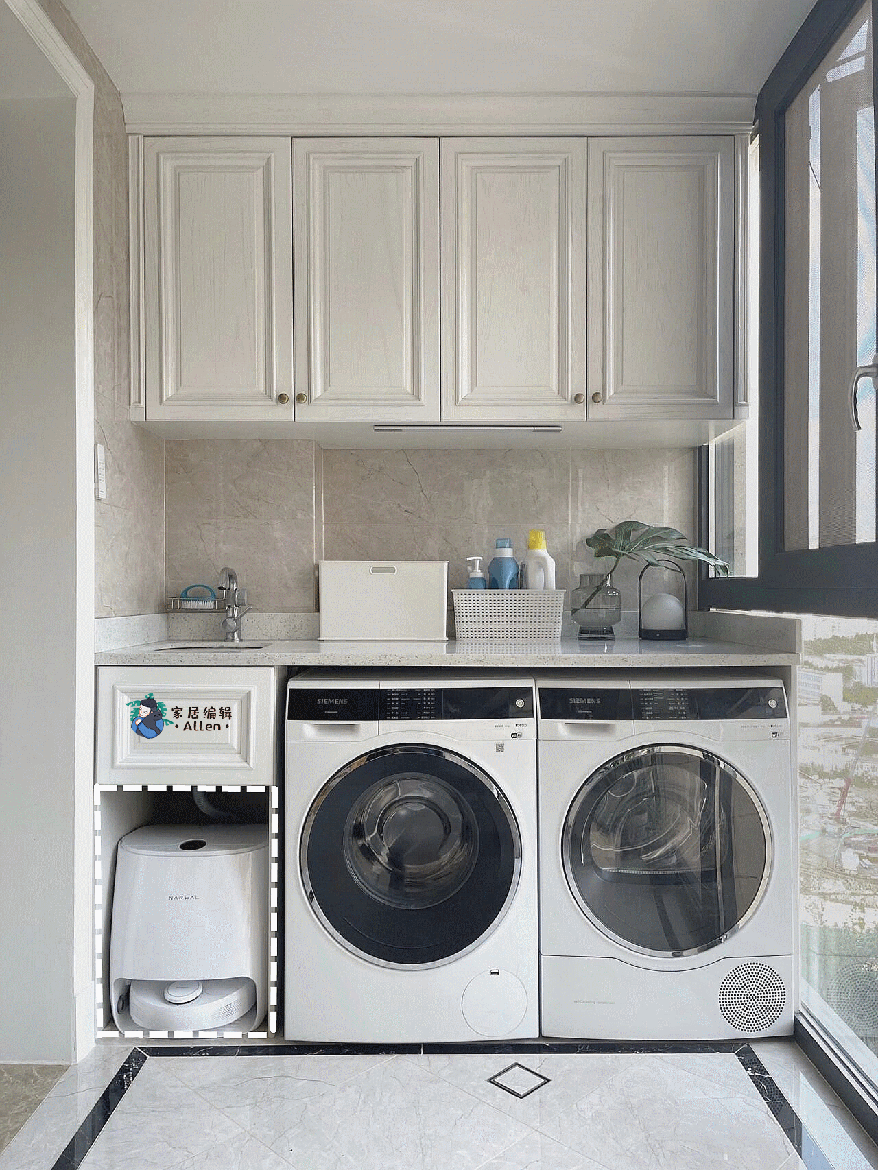 但一定别忘了给洗衣机旁边留个“扫拖机器人位” ,大家千万不要觉得这是花里胡哨的假把式,其实真的很实用,仔细听我讲解。