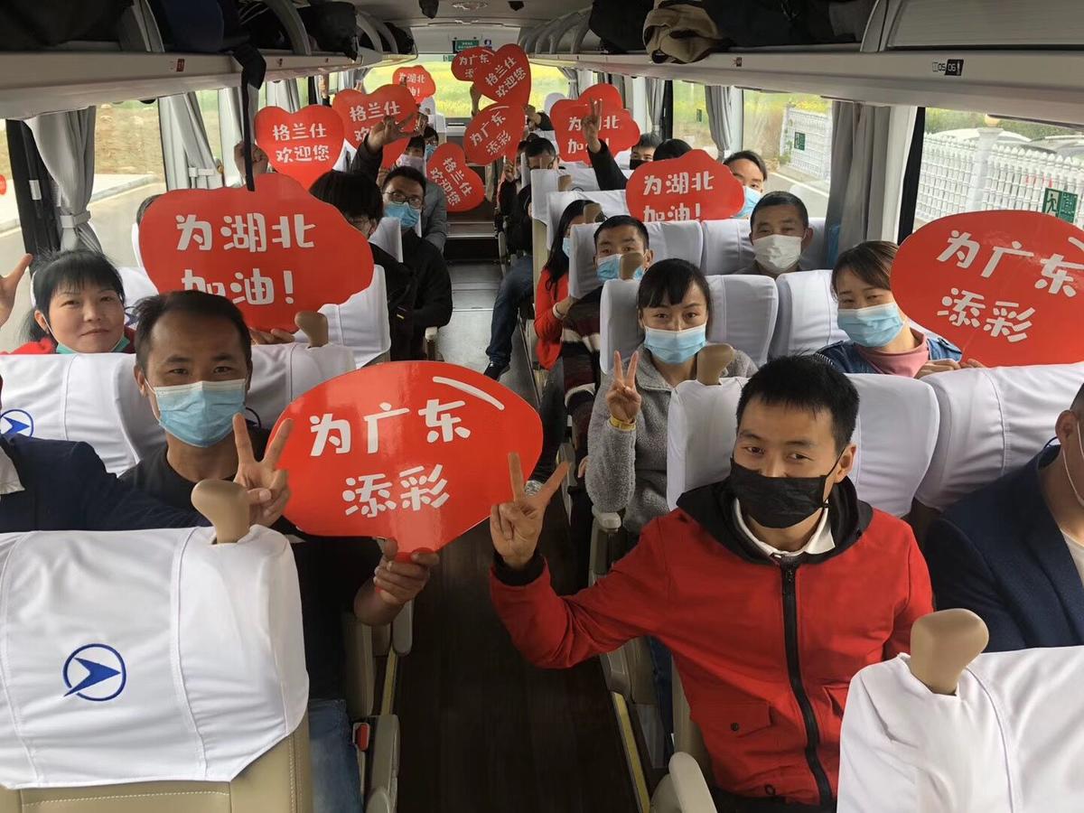 湖北远安县务工人员乘坐格兰仕”点对点一站式“就业专车