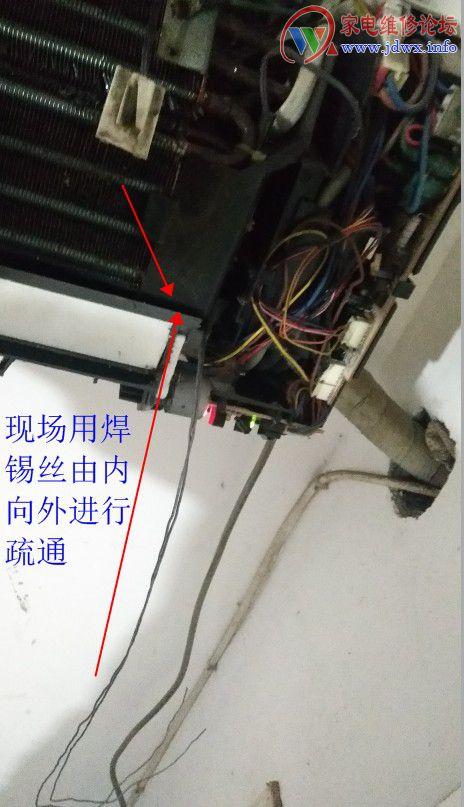 ③以上方法处理后能够应付一段时间,也可以由内向外用软丝疏通不过如果条件许可清洗一下内机蒸发器,水槽等效果更佳。