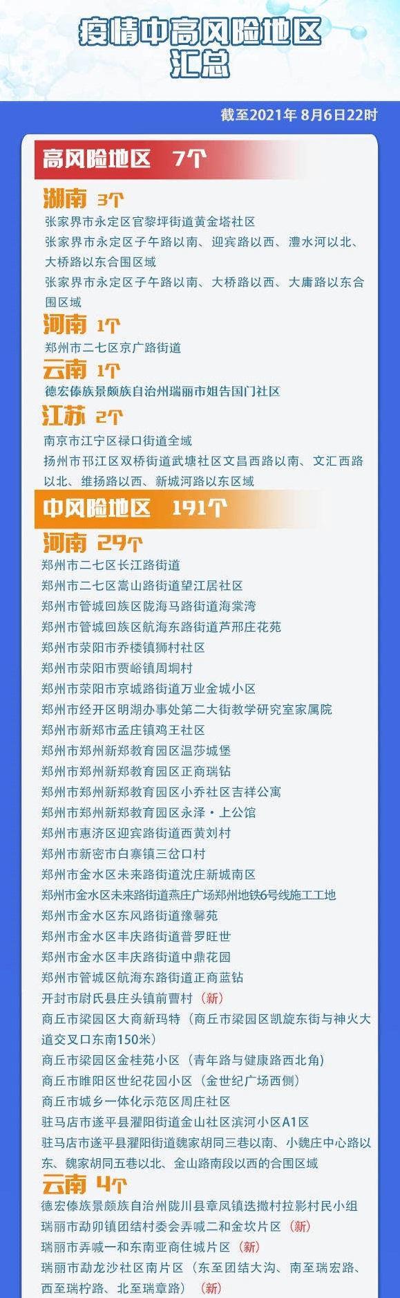全国中、高风险地区风险等级最新情况