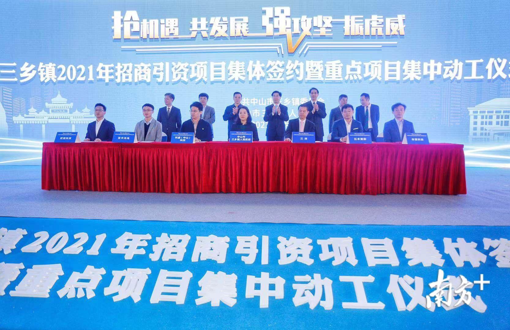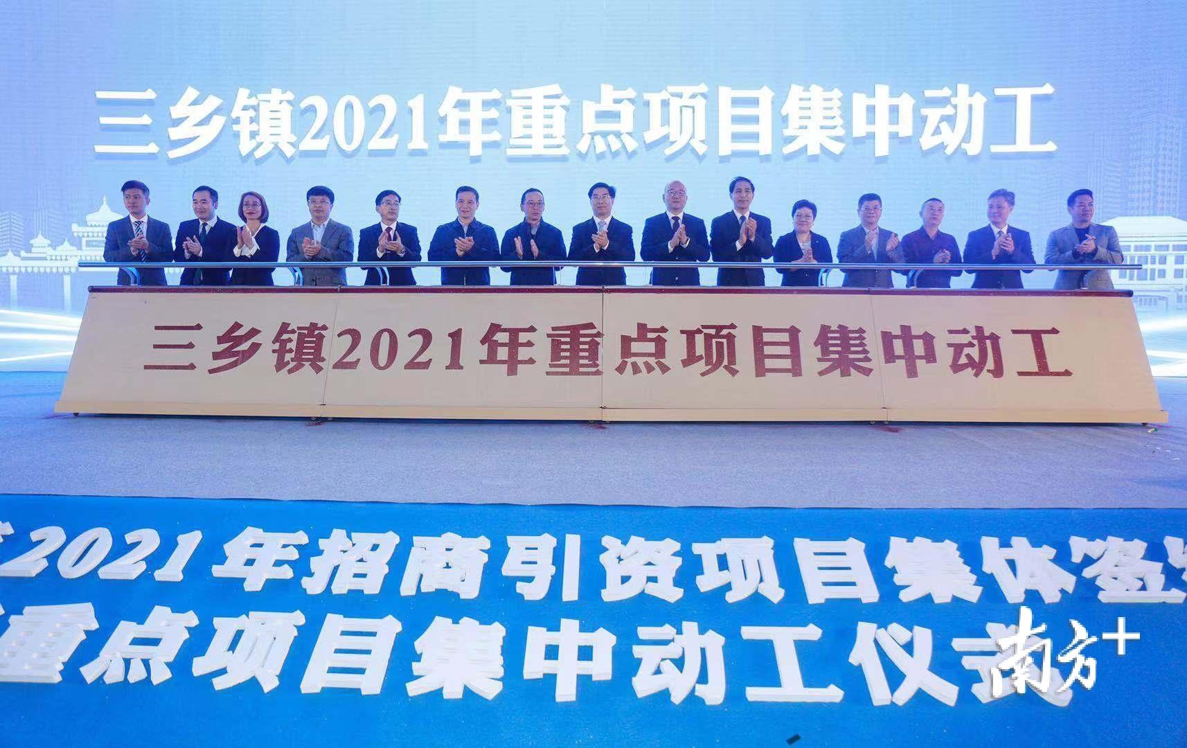 3月23日,在三乡镇琅环湖科创园,三乡镇举行以“抢机遇 共发展 强攻坚 振虎威”为主题的2021年招商引资项目集体签约暨重点项目集中动工仪式,集体签约项目30个,集体动工项目12个,总投资84.5亿。中山市委书记赖泽华,市政协主席唐颖,市委常委、秘书长李长春,市人大常委会副主任冯煜荣,副市长叶红光参加活动。