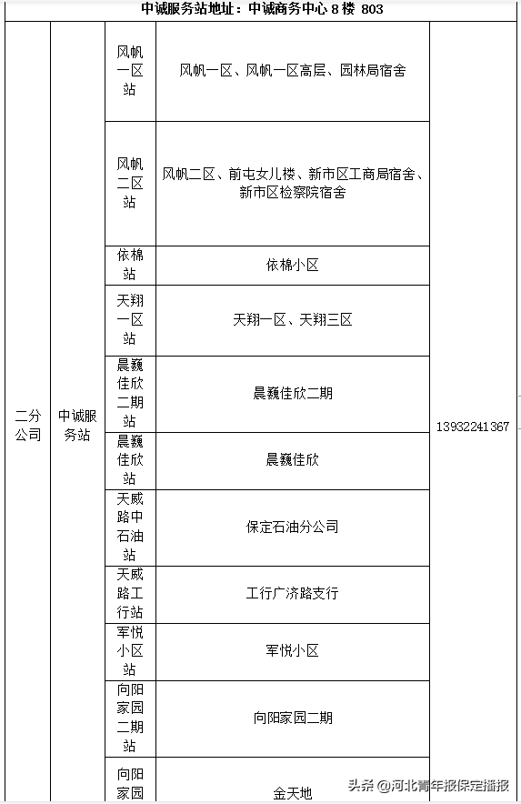 河北青年报讯(记者程功 见习记者刘丹) 11月1日,保定市正式启动供暖工作。记者从大唐供热保定有限责任公司了解到,2020-2021年采暖季大唐各供暖之家服务站名单及归属范围已经确定。 大唐供热营业厅网点地址、供暖之家服务站地址及服务范围如下。