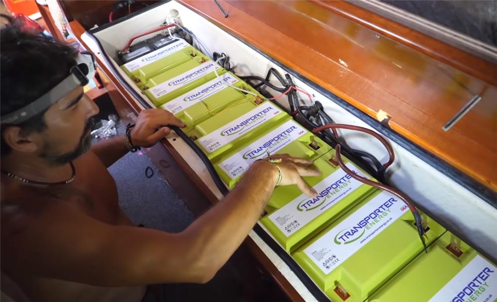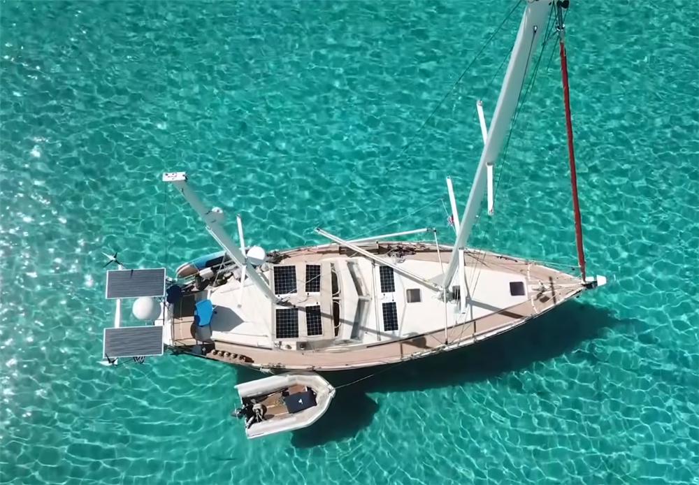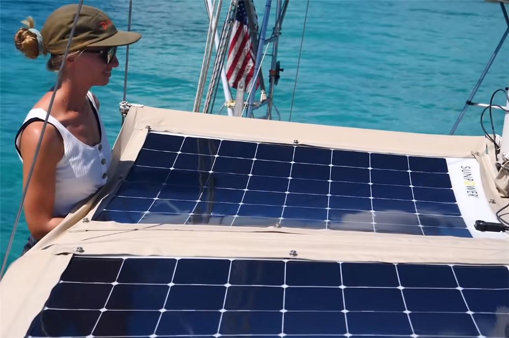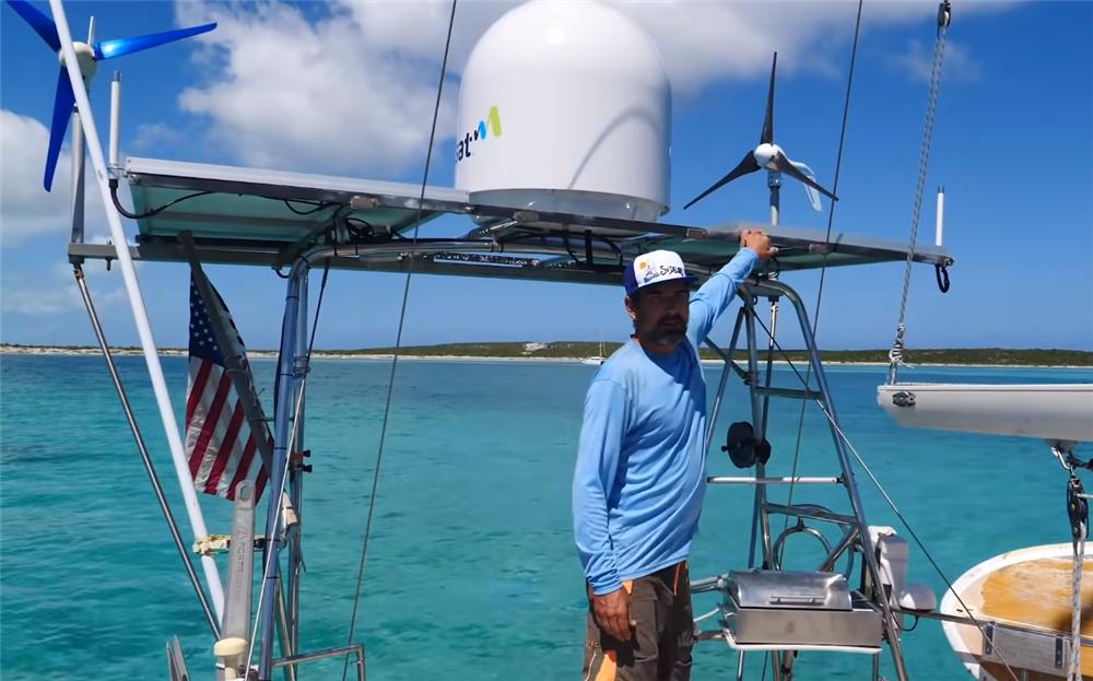 第二个发电手段,则是船上的8块太阳能板,它也同样接入电瓶中,和风力发电装置一起为家中积蓄电能,轻易不会用到发动机舱中的发电机,就能保证家中的用电需求。