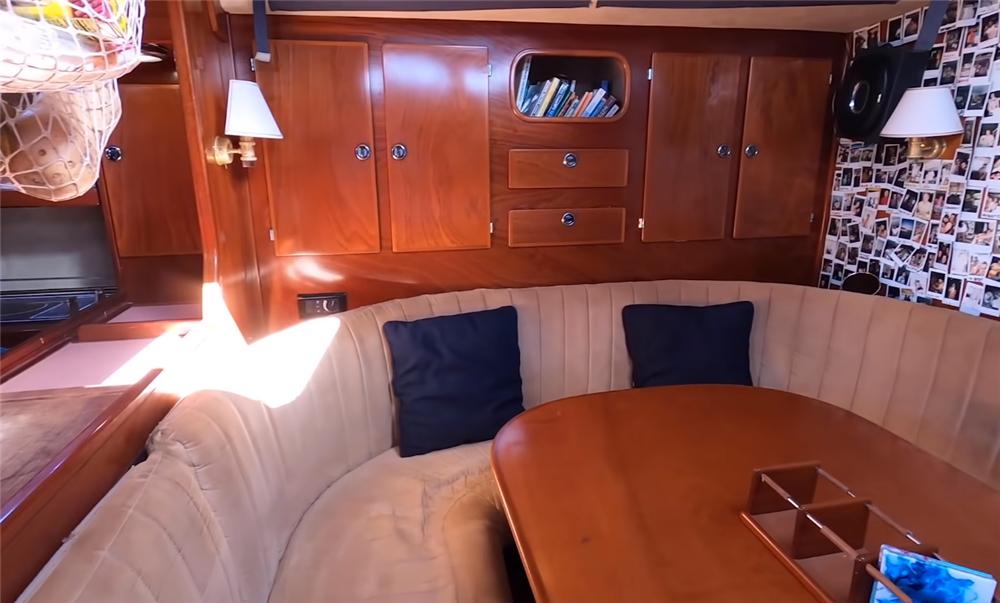 客厅是夫妻二人平日里最常待的地方,海上经常风吹日晒,所以夫妻俩就经常在这里吃饭、工作、或是玩玩手机,也算是海上一个小小的避风港。