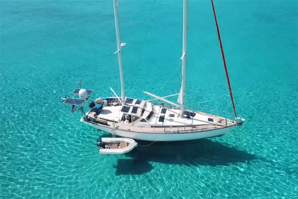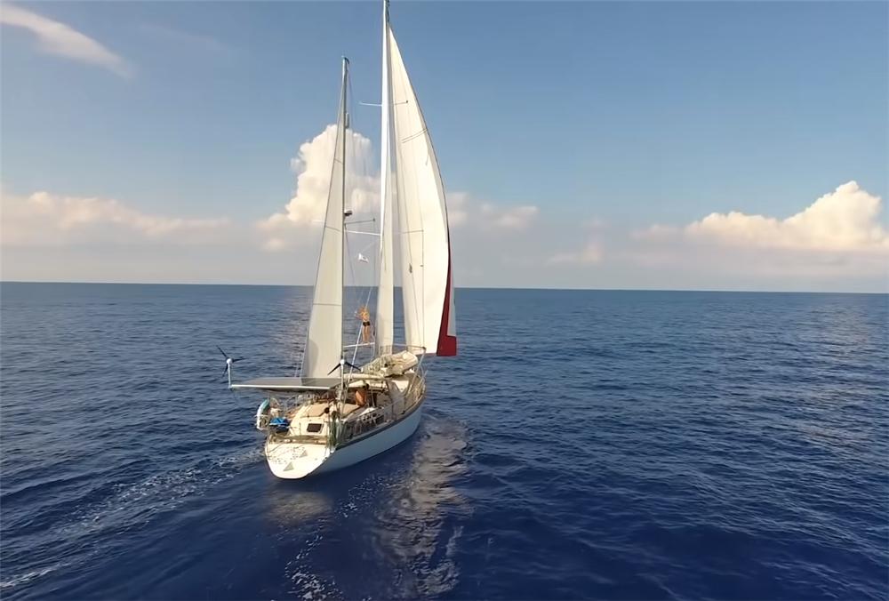 首先,就像文章开头所说,这艘帆船长16米,内部空间大约在30㎡左右,容纳下了各种生活区域,满足日常生活所需。其次,这艘船靠风和发动机来驱驶,且船上搭载了包括太阳能、海水淡化器、卫星网络设备等一系列生活设备,可以实现基本的自给自足,我们后面也会说到。目前,一家三口主要生活在提洛岛周围的海域,也曾到访过六个大洲,共航行了大约83000英里,换算下来差不多是13.3万公里,相当于绕赤道3圈多的距离。▲布里安年轻时