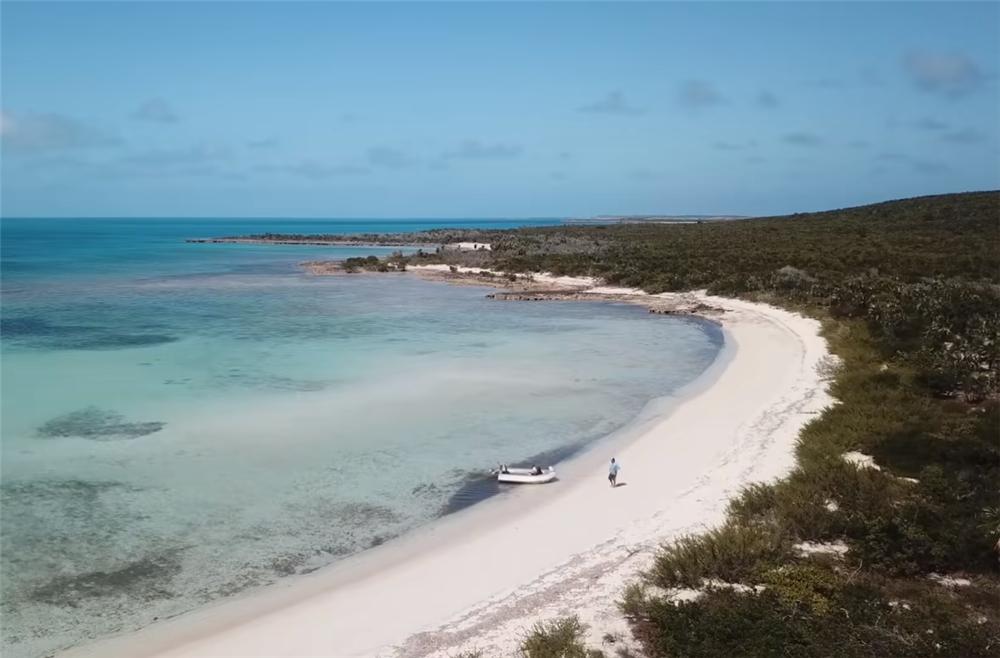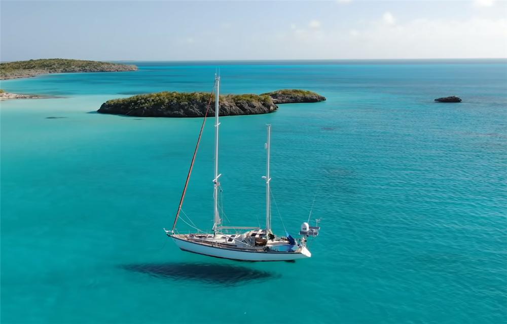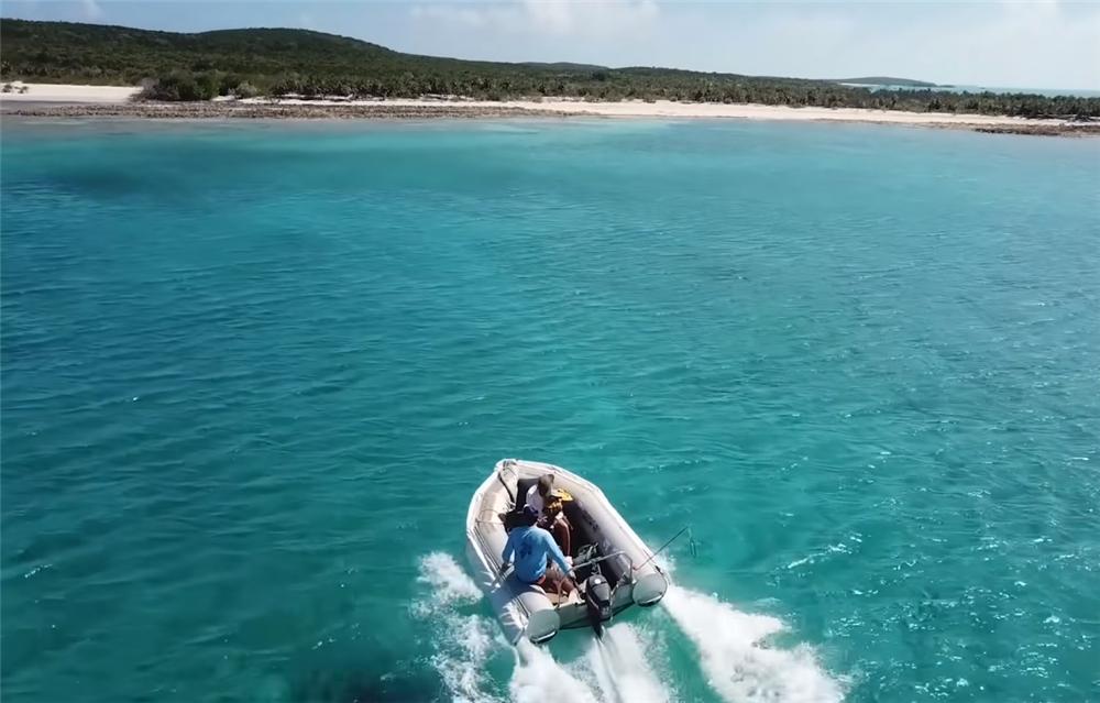 ▲两人抛锚后驶向海岛