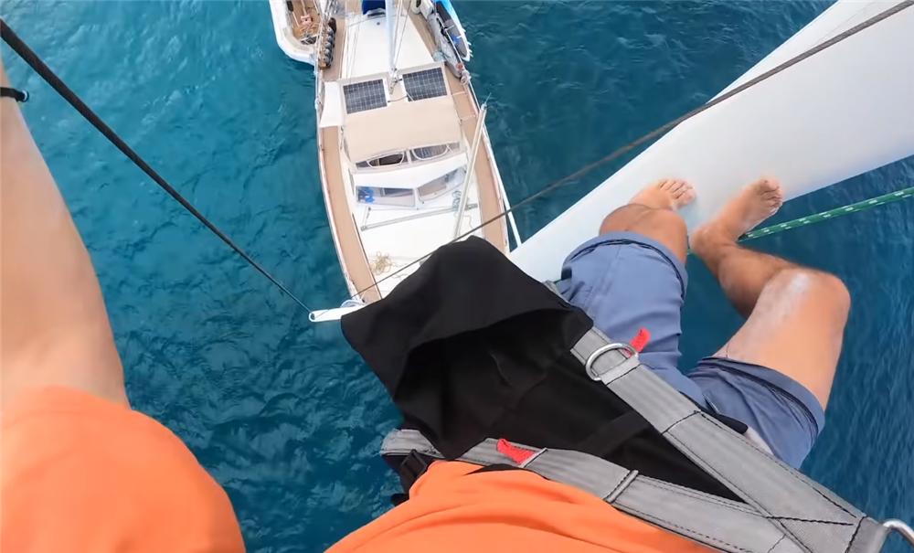 ▲维修桅杆和船帆