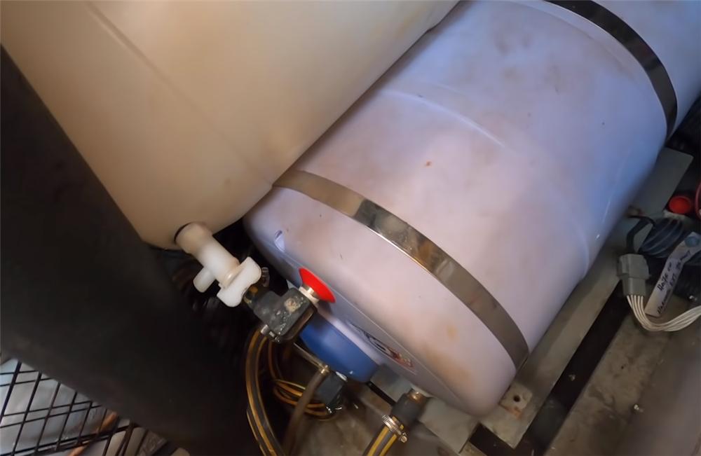 至于用水,家里有专门的海水淡化器,能将淡化后的海水,储存在共1000升的蓄水桶里,并通过一个简单的水位计,呈现剩余水量。