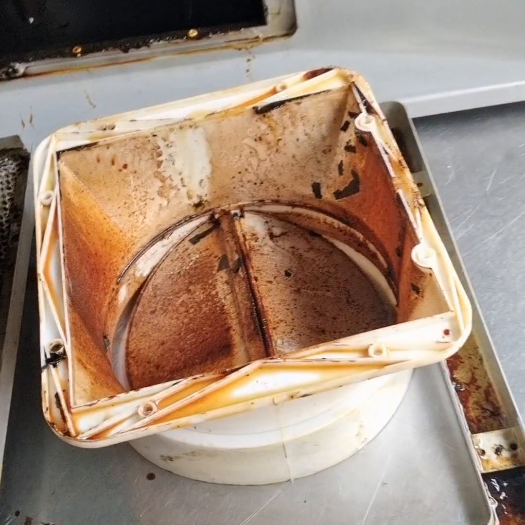 通常情况下,油烟机的清洗频率不应该超过两年。时间久了,油污会侵蚀油漆,即使清洗干净,被侵蚀的部分也会脱落、变黄、生锈,影响使用寿命。这位客户的油烟机使用了三年,虽然清洗后表面看起来还很干净,但其实油漆已经开始脱落、变黄、生锈了,就像这个大灯一样。