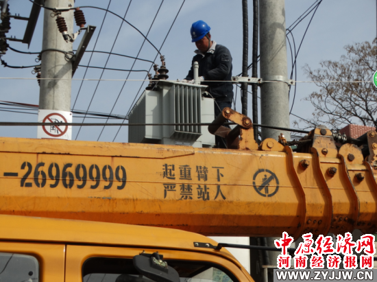 【讯】(河南经济报记者 张建涛 通讯员 谢辛凌 摄)为确保春耕用电,沈丘县周营镇供电所及时成立“春耕保供电”维修服务队,对全镇120个台区的10千伏高低压输电线路和供电设备进行安全巡视和报修服务,以确保辖区春耕用电,不误农时。图为日前,“春耕保供电”服务队在该镇一处台区进行变压器抢修服务。