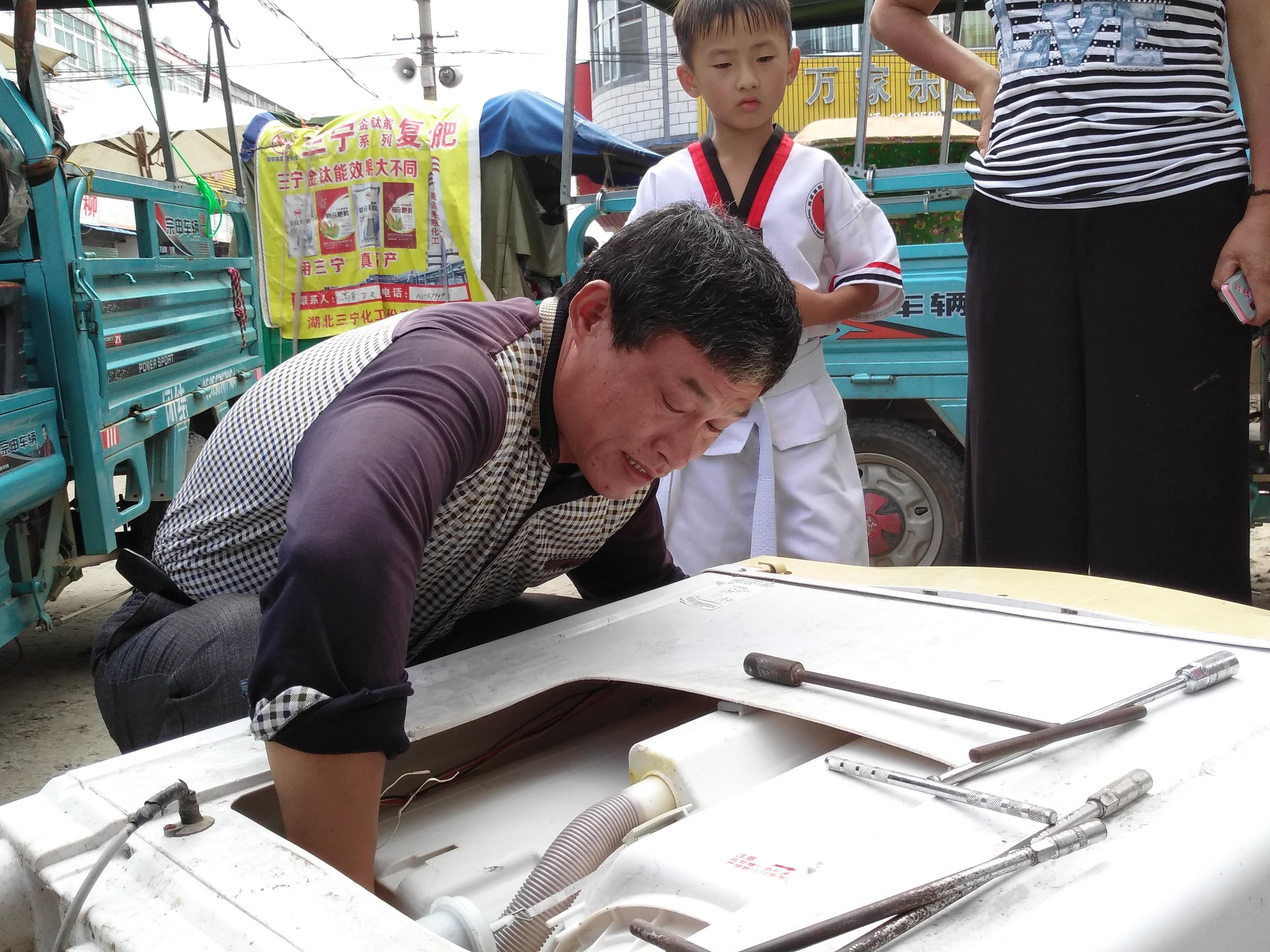 当问到黄朝锋每天能维修多少电器?收入多少钱时?,黄朝锋微笑着说“七八十元吧、养家糊口而易,只要生活的开心就行,要不是喜欢维修这一行,换换别人早就不干了,现在在城里打个工每天也能挣一百多元”。