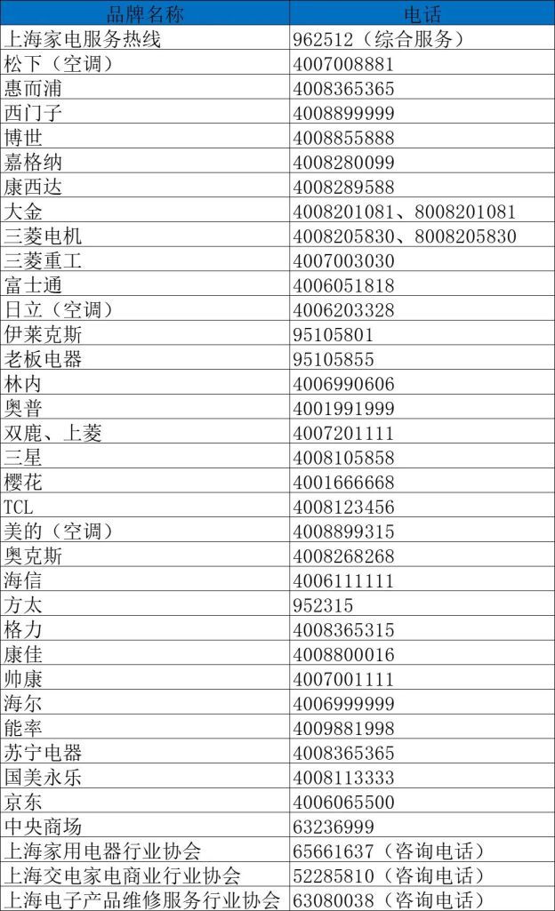 一要 从正规渠道寻找品牌厂家电话,如12345市民热线、12315消保委热线和网站,市商务委官网和962512家电服务热线和网站;三个家电行业协会咨询电话(上海家用电器行业协会:65661637/上海交电家电商业行业协会:52285810/上海电子产品维修行业协会:63080038)。不要 从搜索引擎网络和信箱小广告中查找。