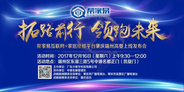 “帮家易”平台在11月28号已经在端州、高要上线试运营,今日(16日)“帮家易”是互联网+家居维修平台,在肇庆市端州区高要区率先正工上线,计划明年在佛山、中山、珠海上线,给千家万户家居维修带来全新的服务体验。