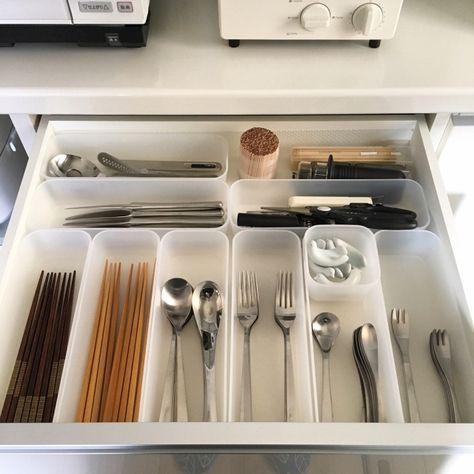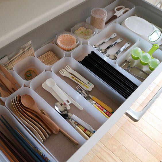 如果是定制橱柜,通常搭配售卖。我们也可以从宜家或网购选择餐具收纳盒,根据抽屉尺寸选择合适的组合放置,更为高效。