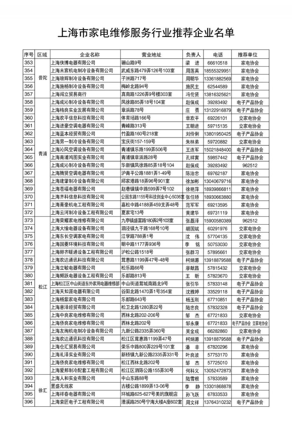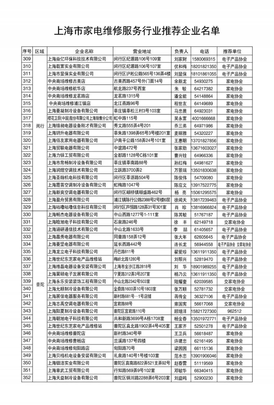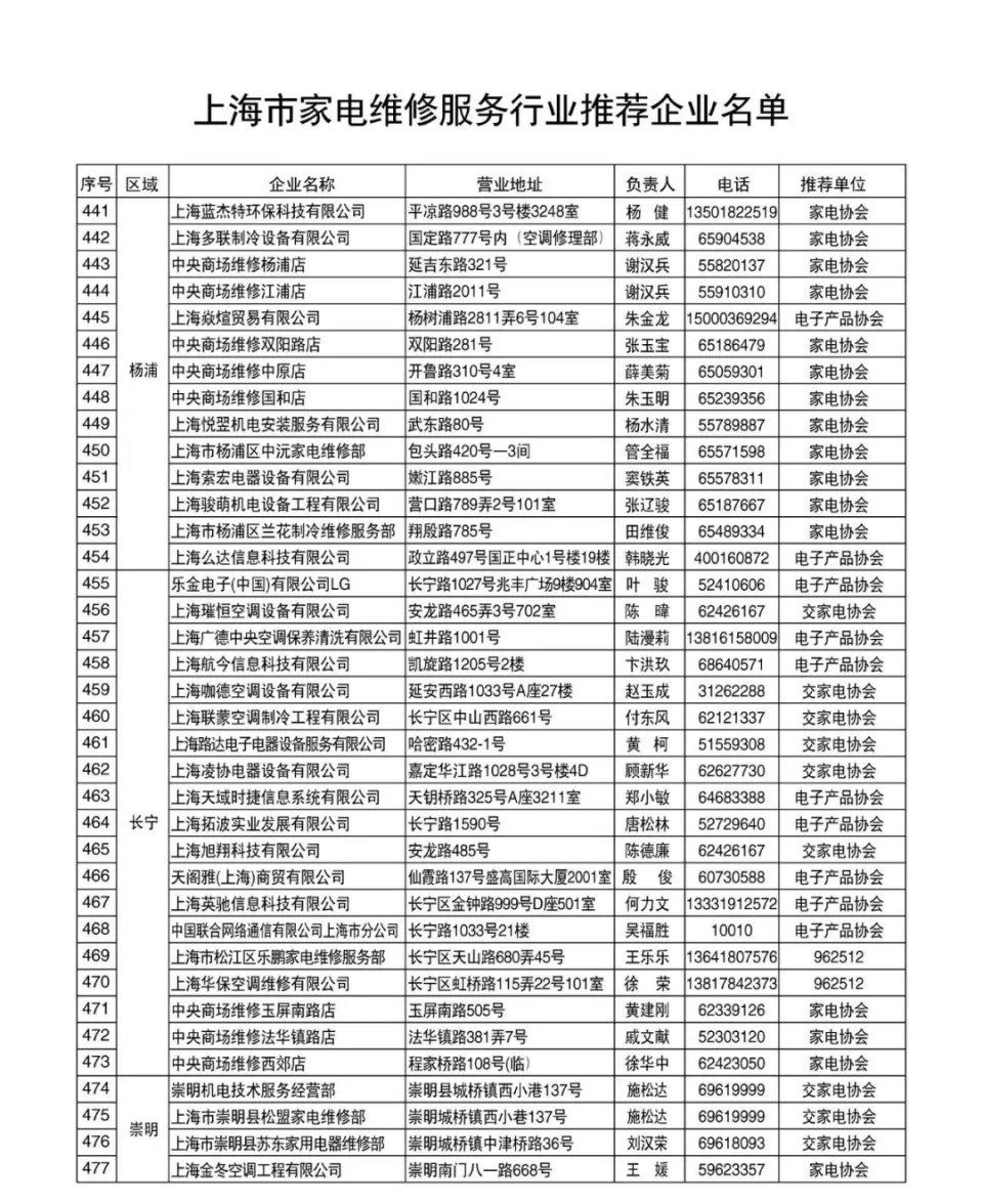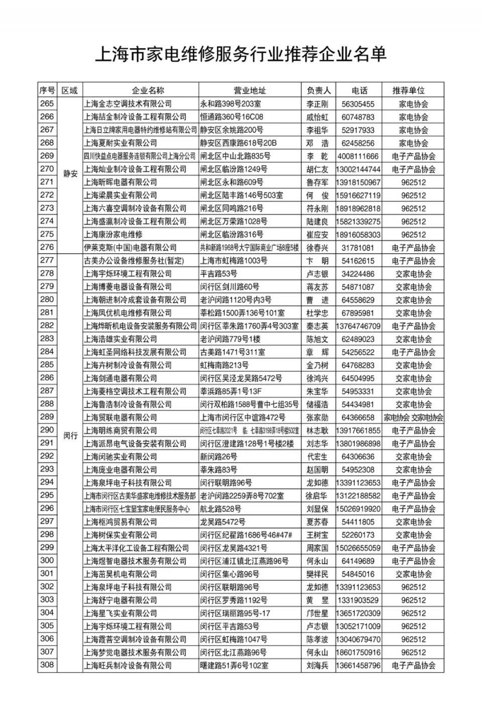 家电维修找哪家?沪上477家正规家电维修企业名单来了!