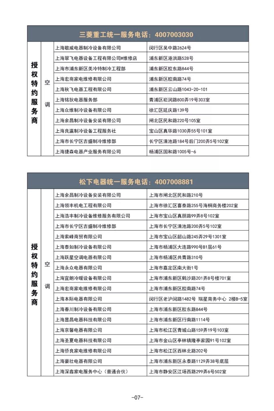 2020年品牌家电企业售后维修服务热线及授权维修服务网点名单
