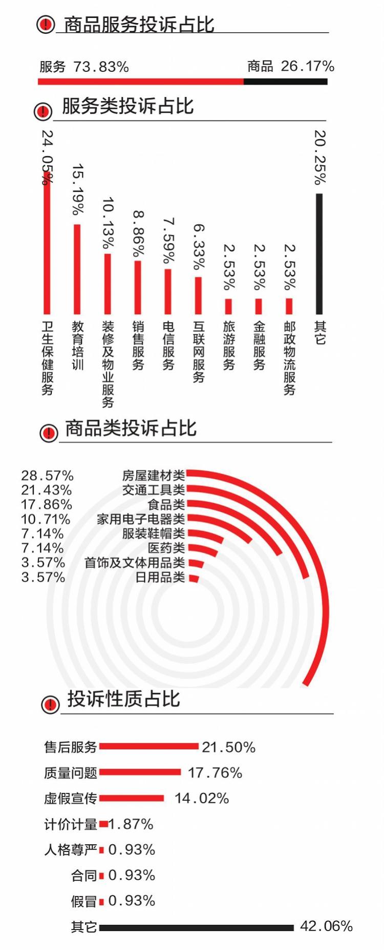 广州消费投诉监测榜第六期发布,监测周期从2019年7月1日至7月15日,南都民调中心广州消费投诉监测课题组共汇总107件广州消费投诉个案。数据分析结果显示,本期消费投诉以服务类投诉为主,占消费投诉总量的73.83%,商品类投诉占26.17%。服务类投诉占比较上期有所上升,而商品类投诉占比较上期有所下降。