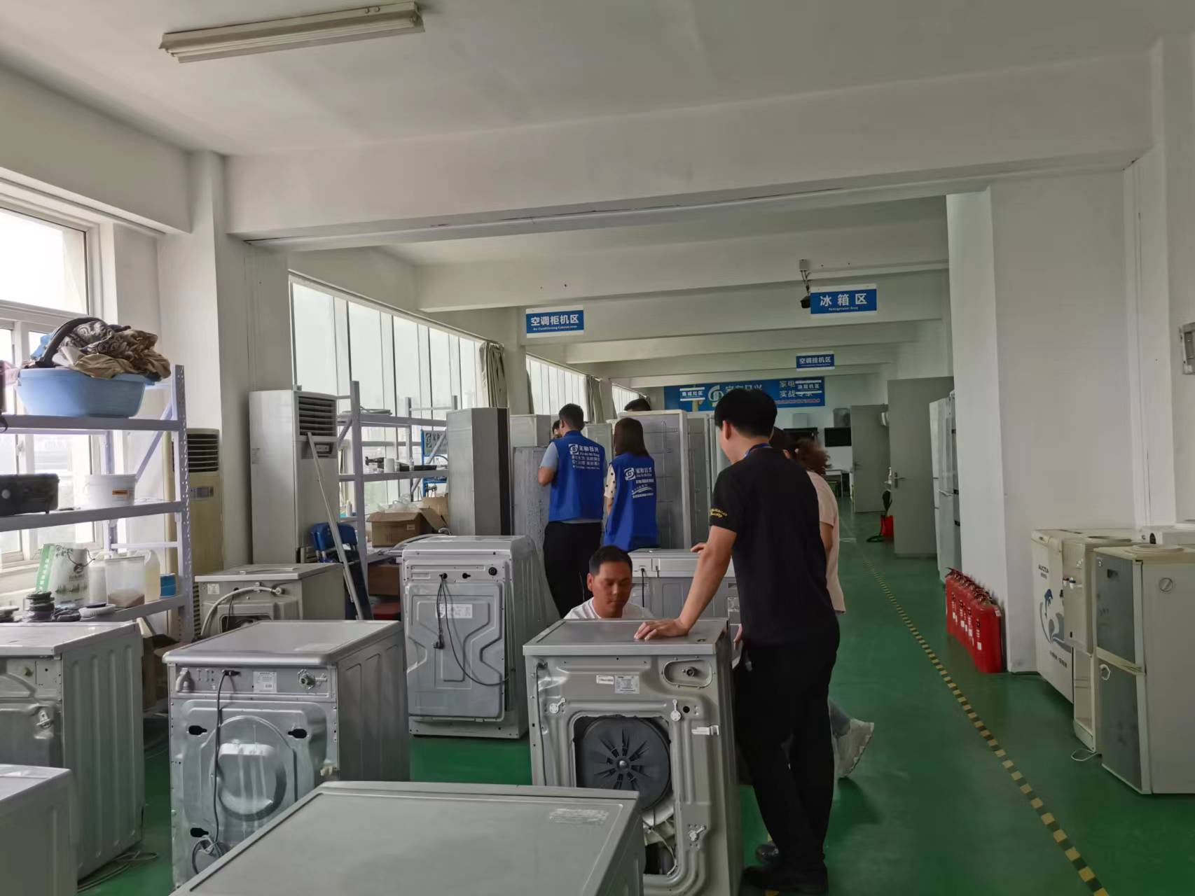 很多朋友问我们这里是如何进行实际操作的,给大家看一下。这些家用电器全是损坏的,这些损坏的电器全部需要同学把它修好。而且我们这里一直都有各个类型的家用电器源源不断的搬过来维修,这样也就大大缩短了同学学习的时间。而且拿到店里面维修的这些家用电器基本上都是一些疑难杂症或者大问题。