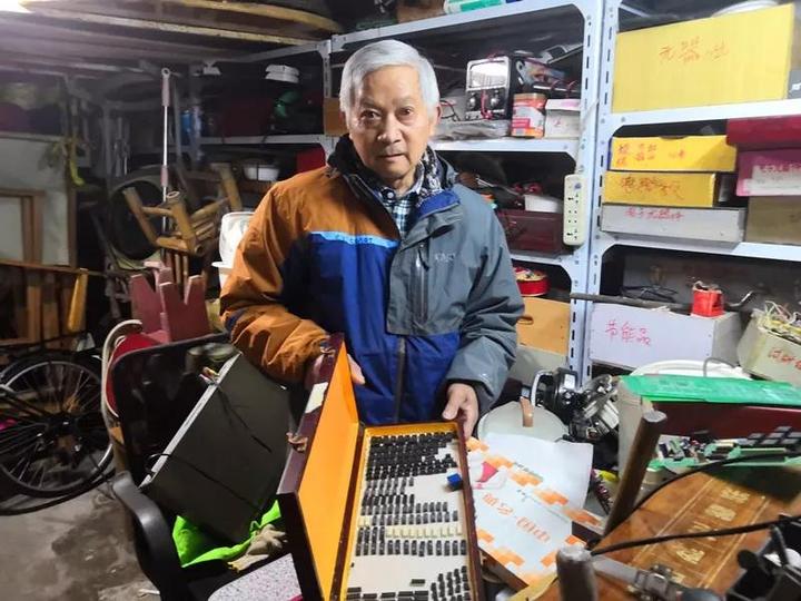 在诸暨暨阳街道朱公湖社区美景新村的一幢居民楼车库里,73岁的老人王月昕给我们介绍他储藏室里的各种“宝贝”,如数家珍。