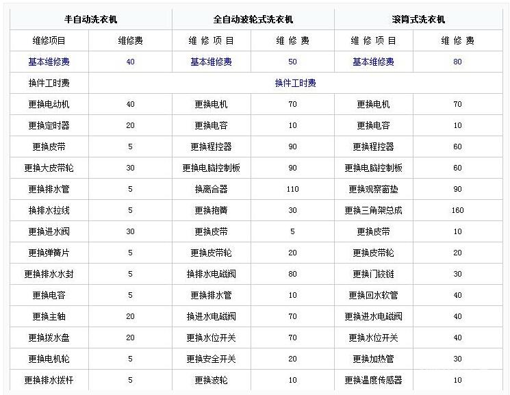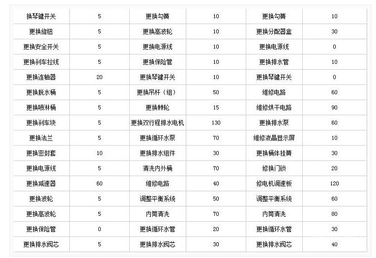 海尔洗衣机售后服务和维修电话电话 洗衣机维修费用标准: