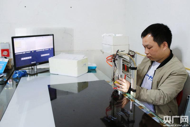 脱贫之后的李昌帆并没有止步不前,肯吃苦不服输的他想着如何才能靠双手致富。为了节省购买设备的成本,他自己查阅资料,组装了一台压屏机,有了压屏机,维修范围就大了很多,不再限于小订单。
