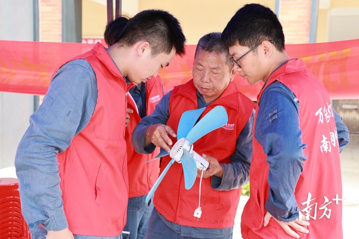 茂名供电局在职的技能专家、退休的供电所师傅,都成了服务队强大的“技术后台”。张建生是茂名化州供电局丽岗供电所的退休老师傅,也是“青年夜校”的常驻老师,精通故障电器的维修。每一次的小家电维修课堂上,他为志愿者们讲解如何判断故障、拆卸更换元件,让一批批“小白”在学习和实践中迅速成长为技术过硬的“维修达人”。