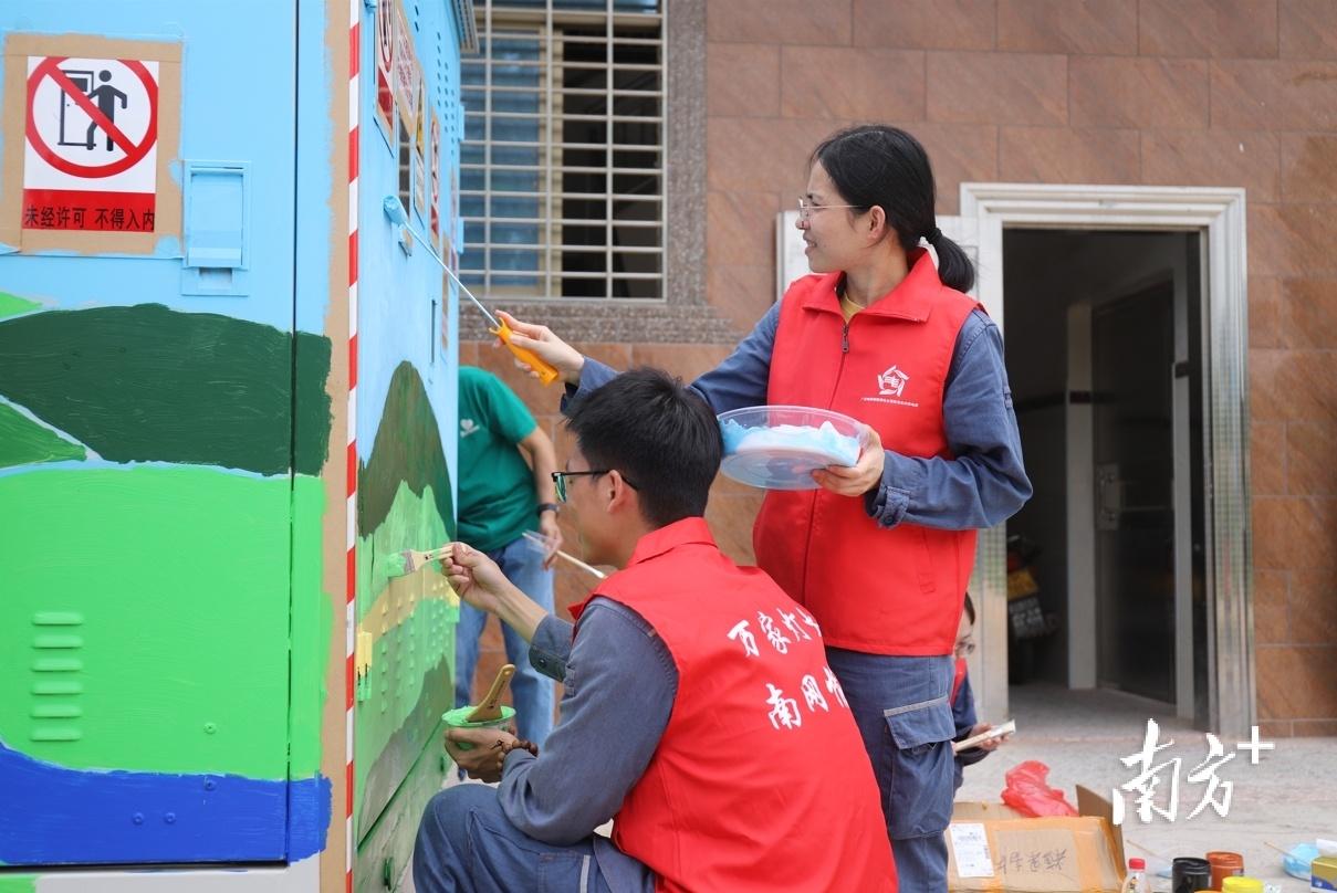 志愿服务队对电力设施进行美化美颜,传播文明新风尚。颜诗华 摄