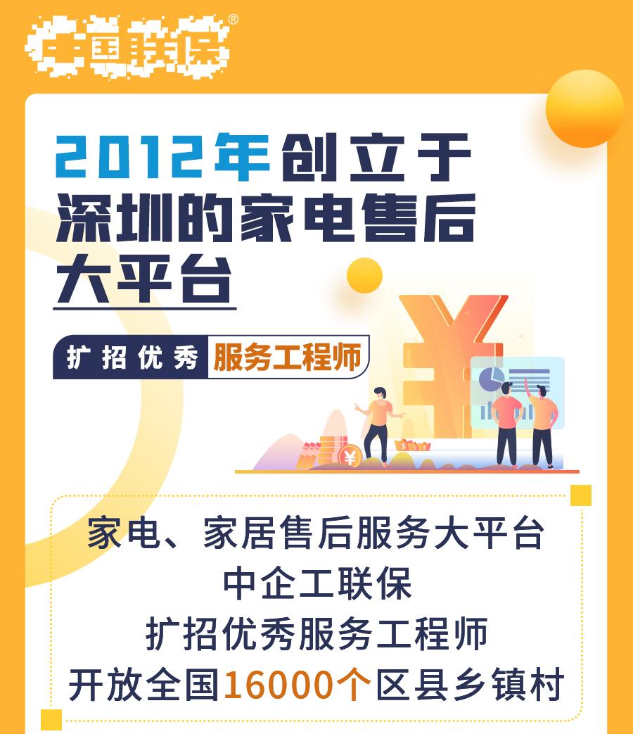 家电售后大平台—中企工联保,新增16000个接单区域可直接加入