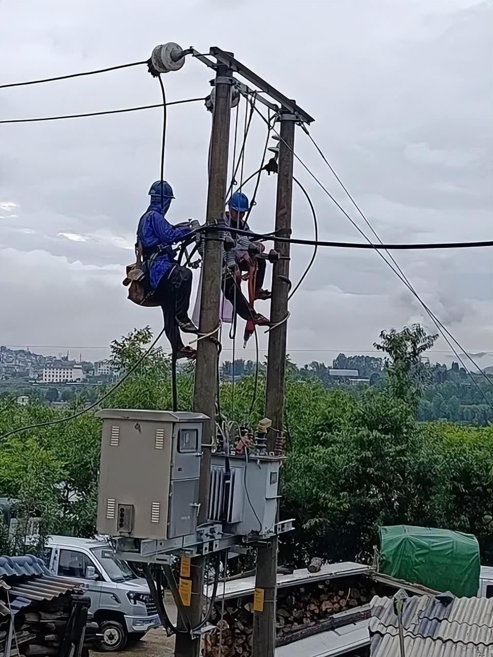 为快速恢复电力供应,保障用户可靠用电,抢修人员冒雨迅速开展抢修。