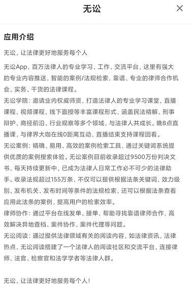 这个软件在应用的第一句话就是“让法律更好地服务每个人”。