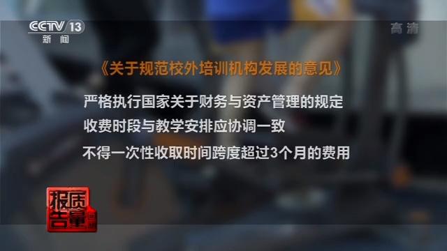 据了解,去年8月,国务院办公厅发布《关于规范校外培训机构发展的意见》要求,严格执行国家关于财务与资产管理的规定,收费时段与教学安排应协调一致,不得一次性收取时间跨度超过3个月的费用。