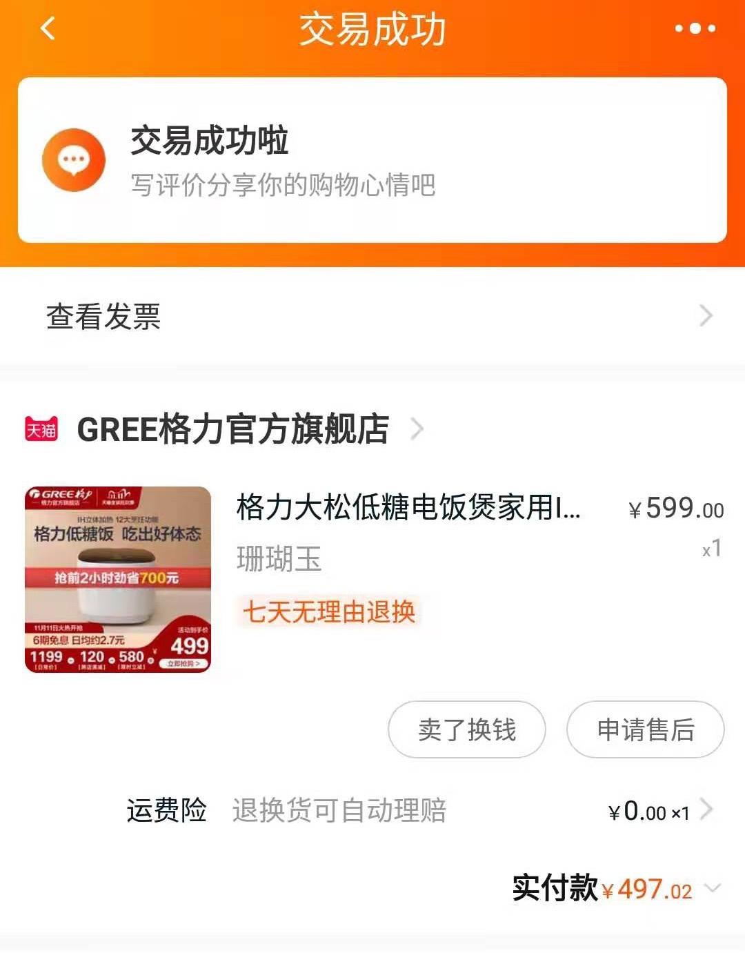 马先生称,2020年11月11日,他在格力官方旗舰店花费497元购买了一个家用电饭煲,保修期为一年。2021年8月,马先生发现,在正常操作的情况下,电饭煲通电后无法将米饭蒸熟。