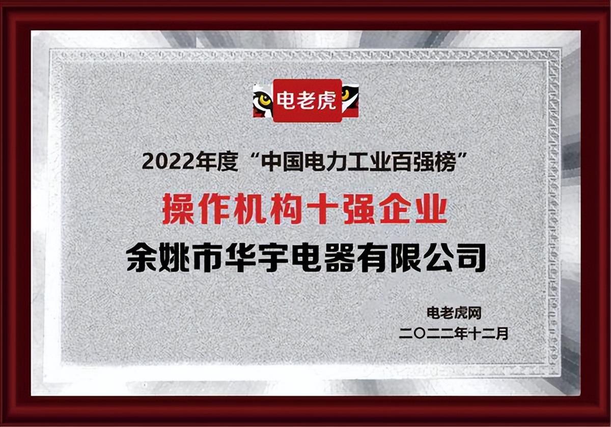 近日,余姚市华宇电器有限公司,参与了由电老虎网联合行业协会、专家及国内媒体共同发起的“2022中国电力工业百强榜”系列评选活动,并在此次评选活动中被评为“操作机构十强企业”!